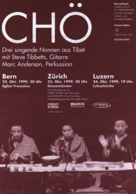First choice on Friday night was Choying Drolma and Steve Tibbetts. Truly enlightening in many ways, their performance fused ancient sacred Tibetan chant with cosmic embellishment from Tibbetts’ guitar and Marc Anderson’s percussion, gongs, and samples. Visually it was quite a sight too: three Tibetan nuns washed in the soft light of candles, flanked by electric guitar and a percussion array. Deep stirrings I can’t even begin to discuss here were triggered by the sound of Chö, and from the response I felt from the audience, it wasn’t just happening to me.